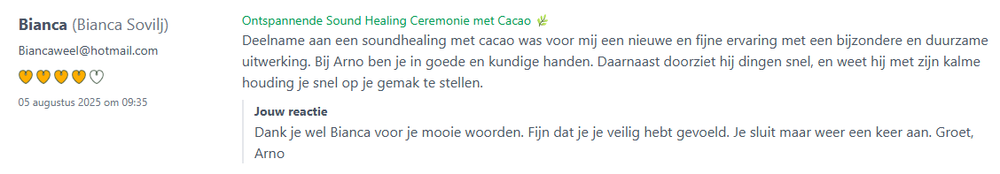 Ook op langere termijn helpt soundhealing je om beter te luisteren naar jezelf. Je zenuwstelsel komt tot rust, je energie stroomt vrijer, en je ervaart meer ruimte om jezelf te zijn. Het is heling in zachtheid – voor wie verlangt naar diepgang, ontspanning en innerlijke afstemming.